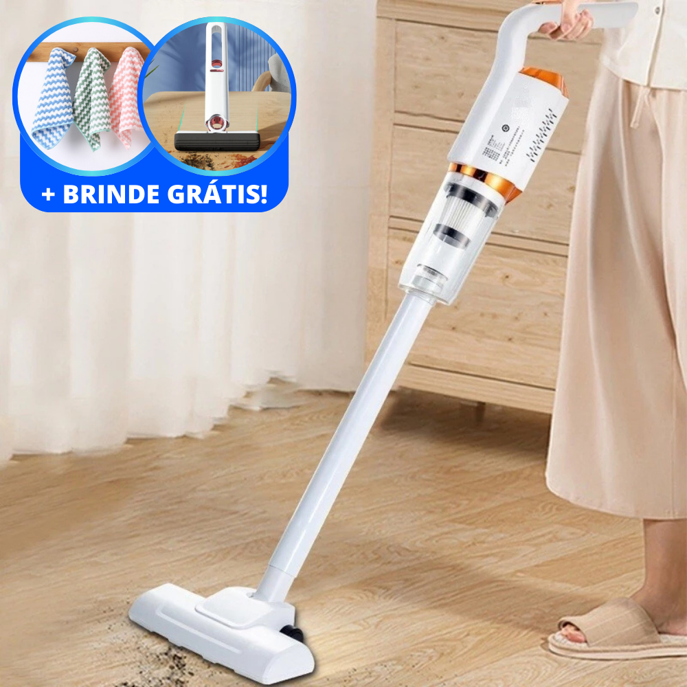 O Aspirador de Pó 3 em 1 Portátil Sem Fio é perfeito para quem busca praticidade e versatilidade na limpeza do dia a dia. Com a função 3 em 1, você pode utilizá-lo tanto como aspirador vertical quanto como aspirador de mão portátil, garantindo facilidade para limpar pisos, estofados, tapetes e ambientes pequenos como o interior do carro. A tecnologia sem fio proporciona total liberdade de movimento, sem a limitação de cabos.